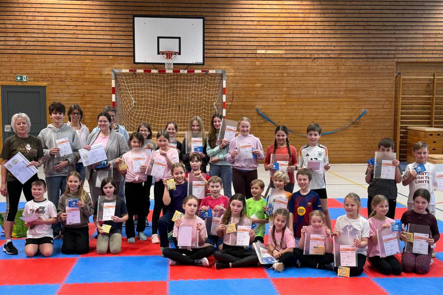 auf und nieder rollen und noch so manche andere Übung, beweisen. Die Kinder hatten viel Spaß und waren stolz auf ihr Tun. Dies wurde mit einer Urkunde und einer Überraschung gewürdigt.